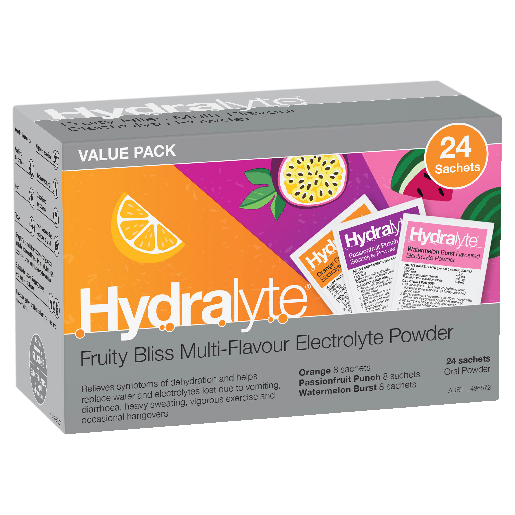 Hydralyte Electrolyte relieves symptoms of dehydration and helps replace water and electrolytes lost due to vomiting, diarrhoea, heavy sweating, vigorous exercise and occasional hangovers.